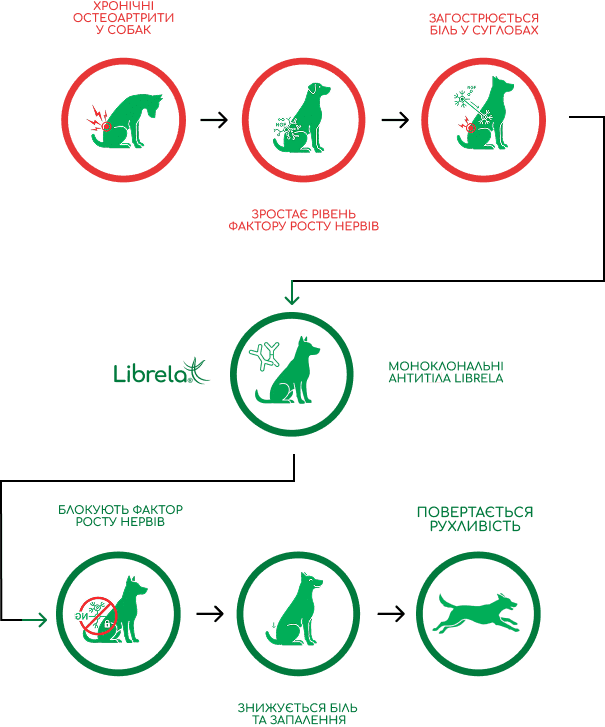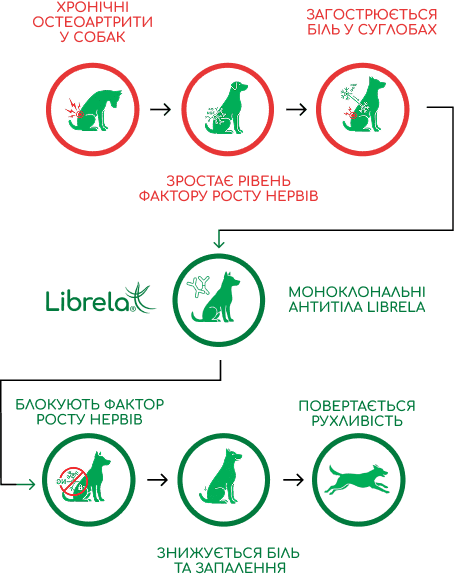 Якщо власник помітив зміни в загальному стані собаки, такі як: зниження активності, кульгавість, апатія, небажання гуляти, труднощі зі стрибками – варто показати улюбленця ветеринару.Рішення про призначення Librela приймає виключно ветеринарний лікар після огляду, діагностики остеоартриту та оцінки загального стану улюбленця.